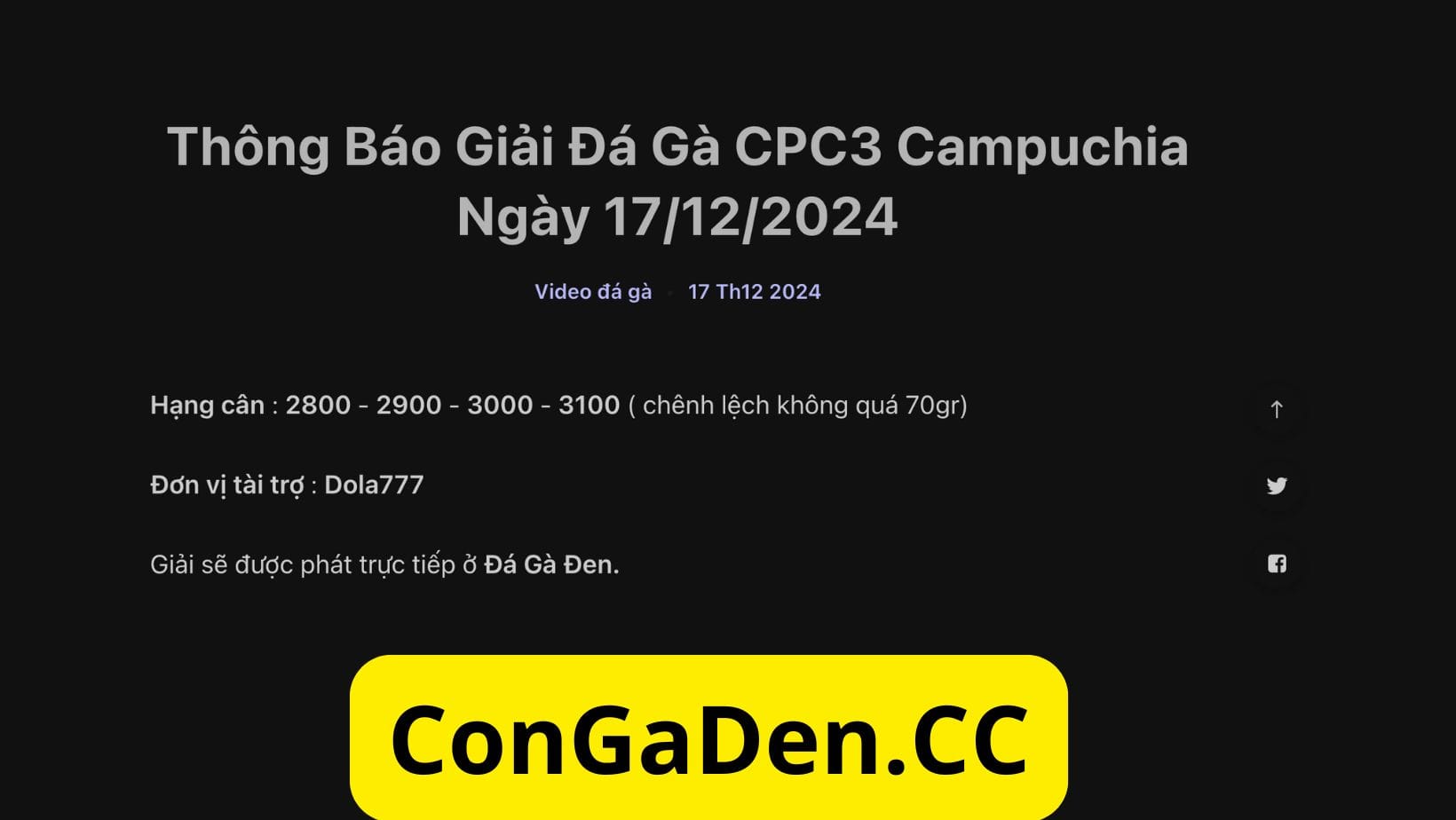 Thông báo kết quả giải - đá gà CPC3 ngày 17/12/2024